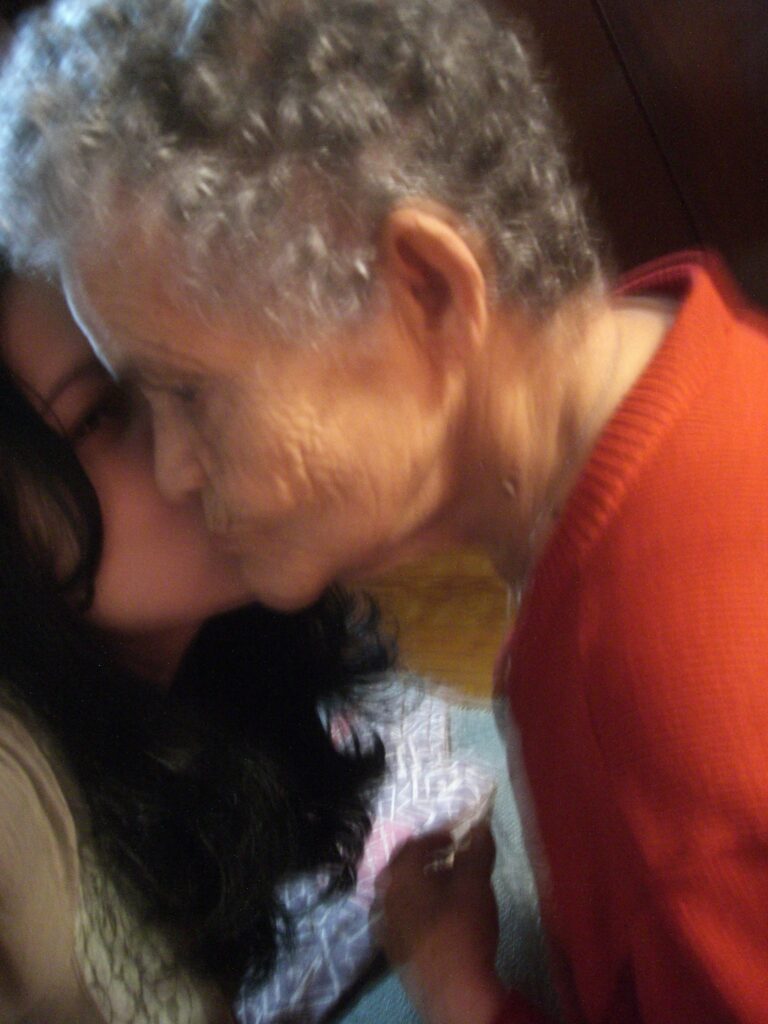 Aos poucos, a minha avó foi perdendo a capacidade de andar e de sustentar-se em pé, mas ainda podia falar e se mexer, abraçar e fazer carinho, entender o que todos estavam dizendo e conversar. Depois, ela parou de falar fluentemente, mas ainda o fazia trocando algumas palavras. Depois, perdeu os movimentos da deglutição e passou a se alimentar com uma sonda, mas compreendia linhas e entrelinhas, e podíamos expressar o nosso amor e ter a certeza de que éramos compreendidos. Agora, estamos felizes porque a minha avó fixou o olhar em alguma coisa ou movimentou os dedinhos do pé. Estamos felizes porque ela respira e sente o carinho do tato e as cócegas no pé. Minha avó vai aos poucos, bem aos poucos, nos preparando para quando estivermos sozinhos da sua grande companhia. Por enquanto, ela respira e gosta muito de música. E nos ensina a agradecer por um único piscar de olhos. Ela vai nos mostrando tudo o que somos e tudo o que temos de tão valioso na vida.